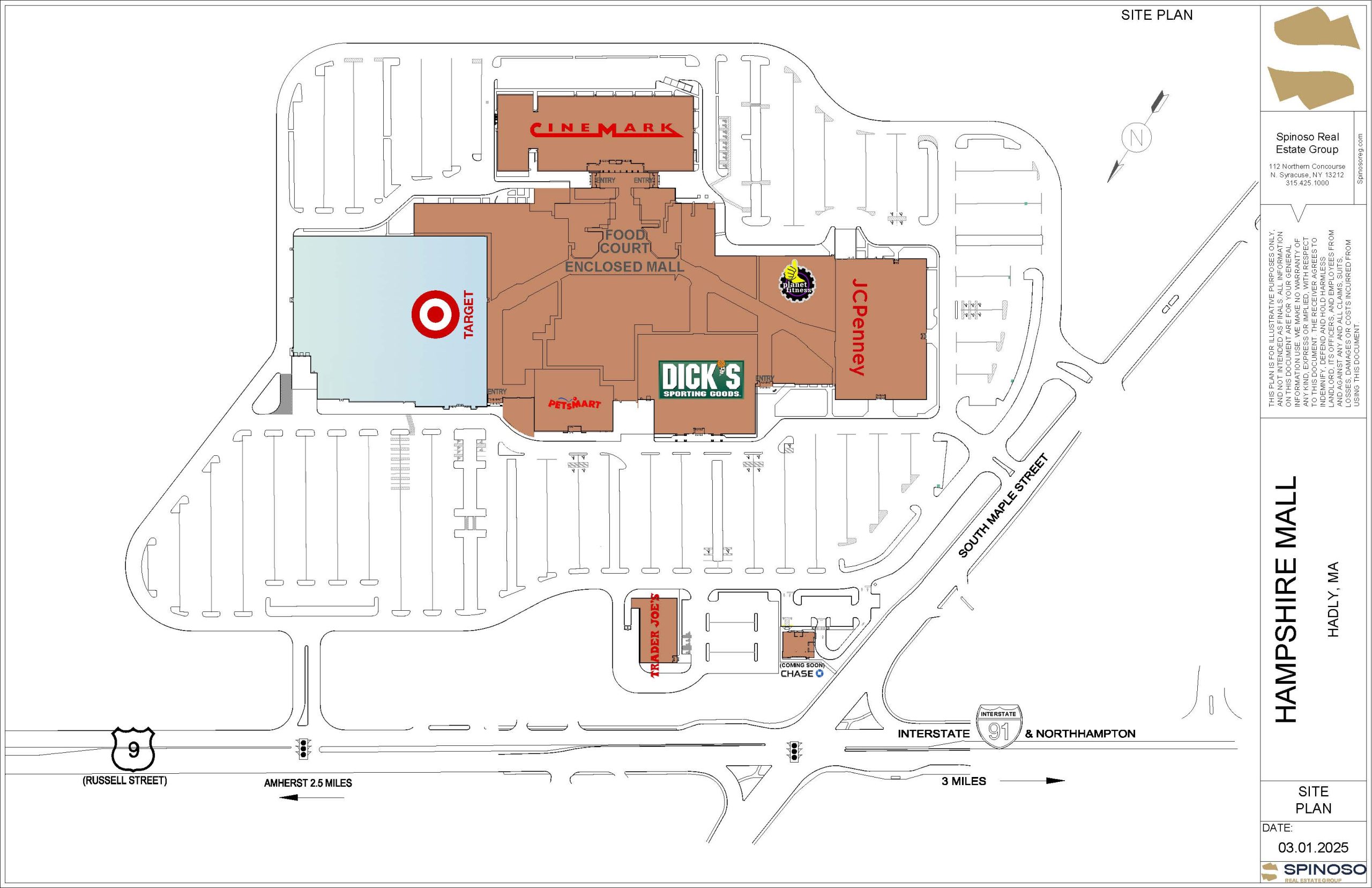 Hampshire Mall is a 456,242 SF enclosed shopping center in Hadley, MA. Centrally located on Route 9, a major artery in Hadley, Massachusetts, it connects to affluent cities of Northampton and Amherst. This one-level shopping mall stands as the premier shopping and entertainment destination of Hampshire & Franklin Counties, dominating this trade area.