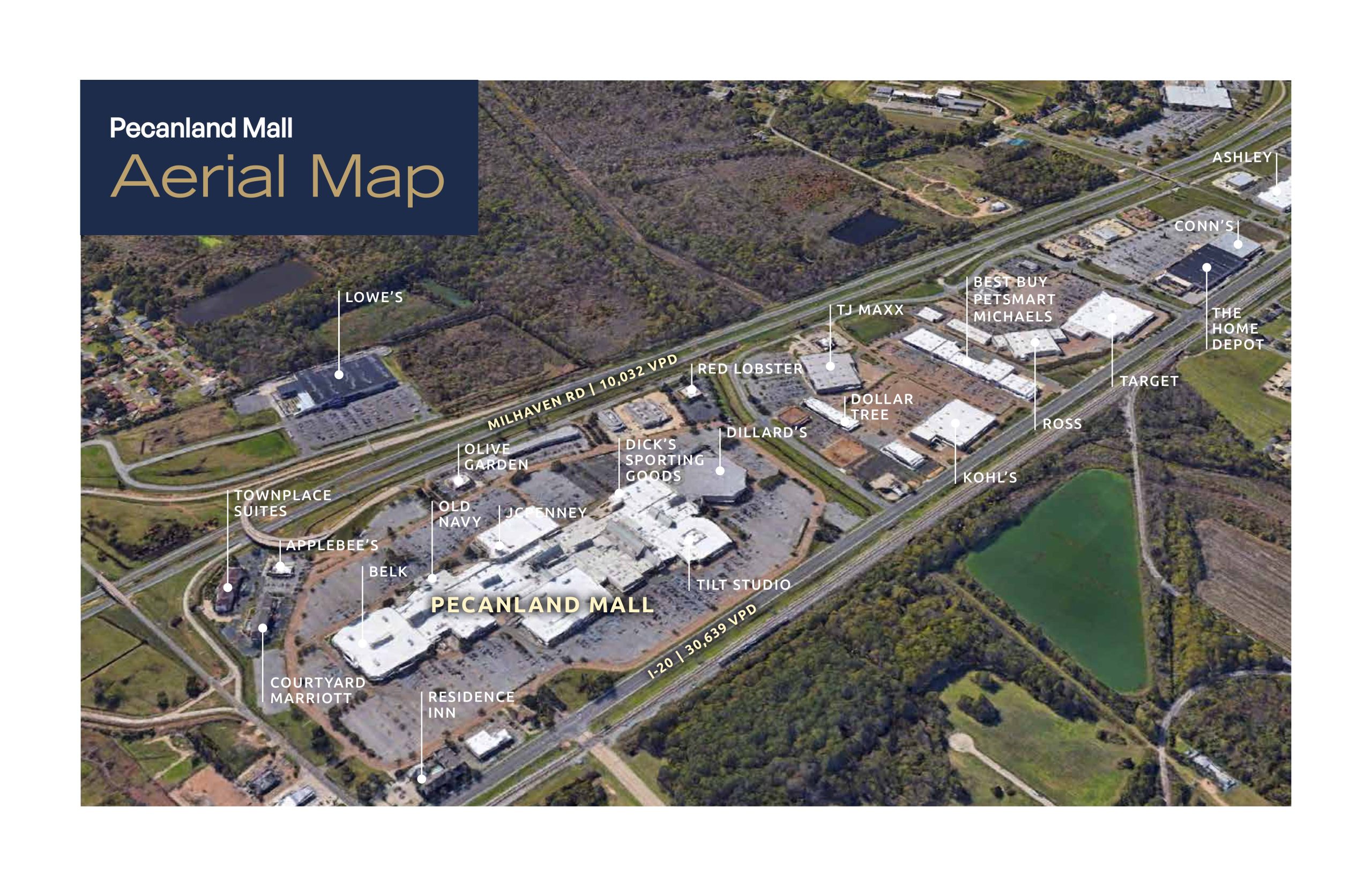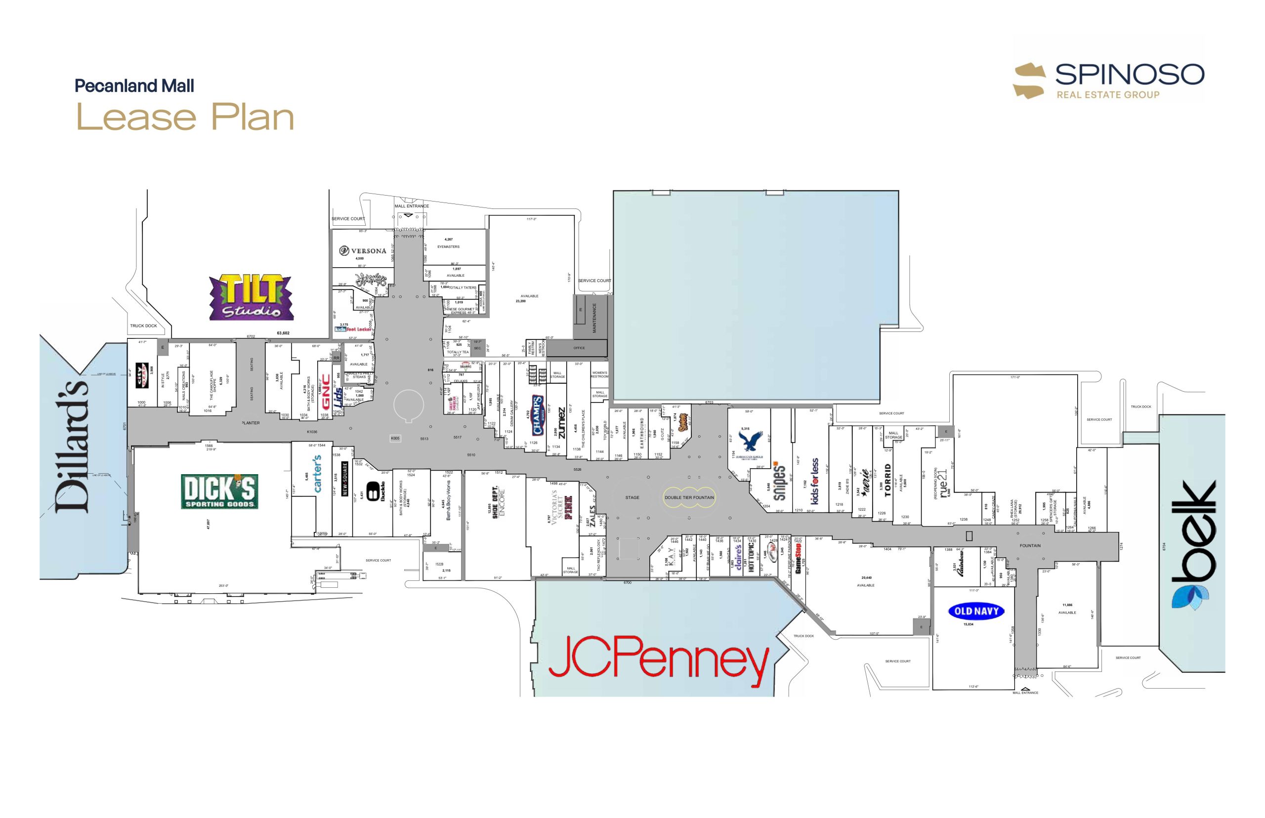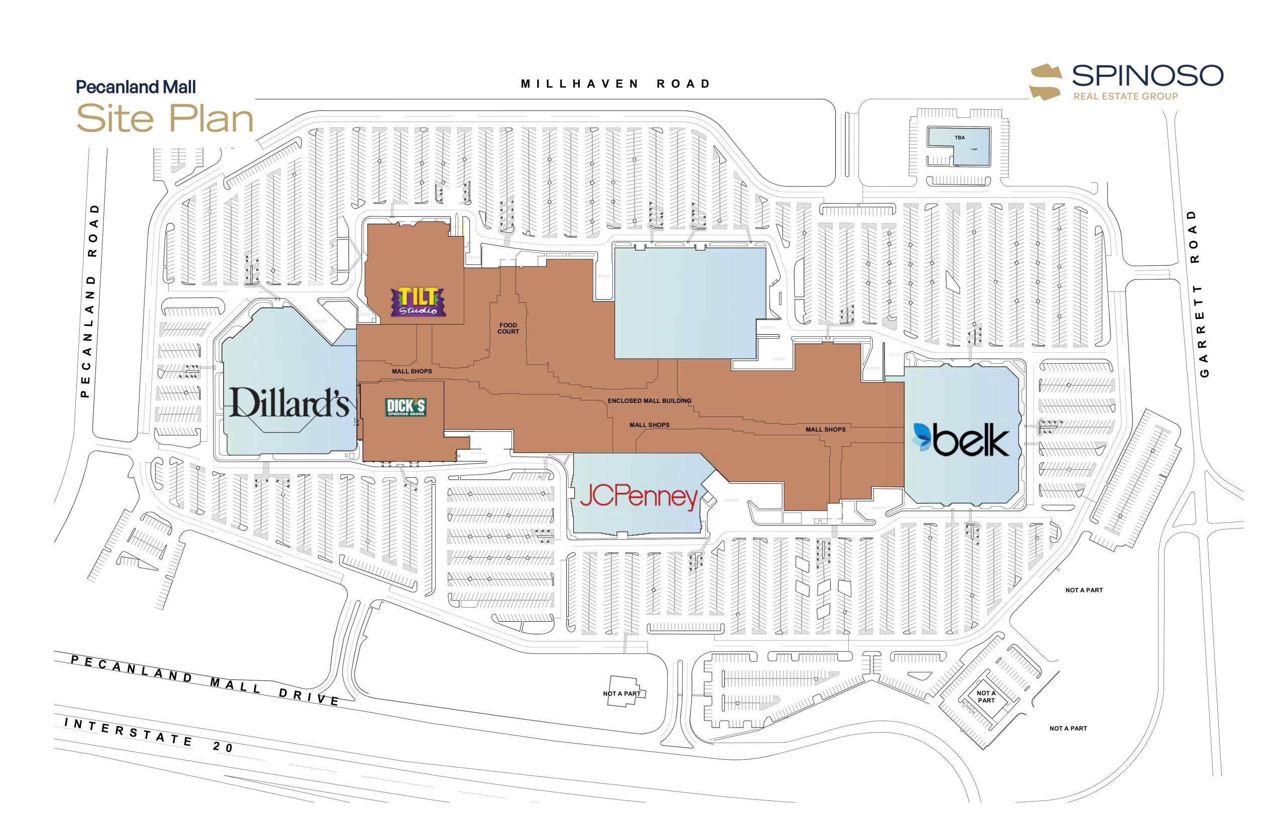 Pecanland Mall is a regional mall in Monroe, LA. As the only regional shopping center within a 90-mile radius, it serves as the dominant shopping destination in the area. Pecanland Mall features an exciting mix of shopping and anchored by Belk, Dillard’s, and JCPenney. The center hosts two beautiful fountains as well as 63,000 SF of entertainment provided by Tilt Studios.