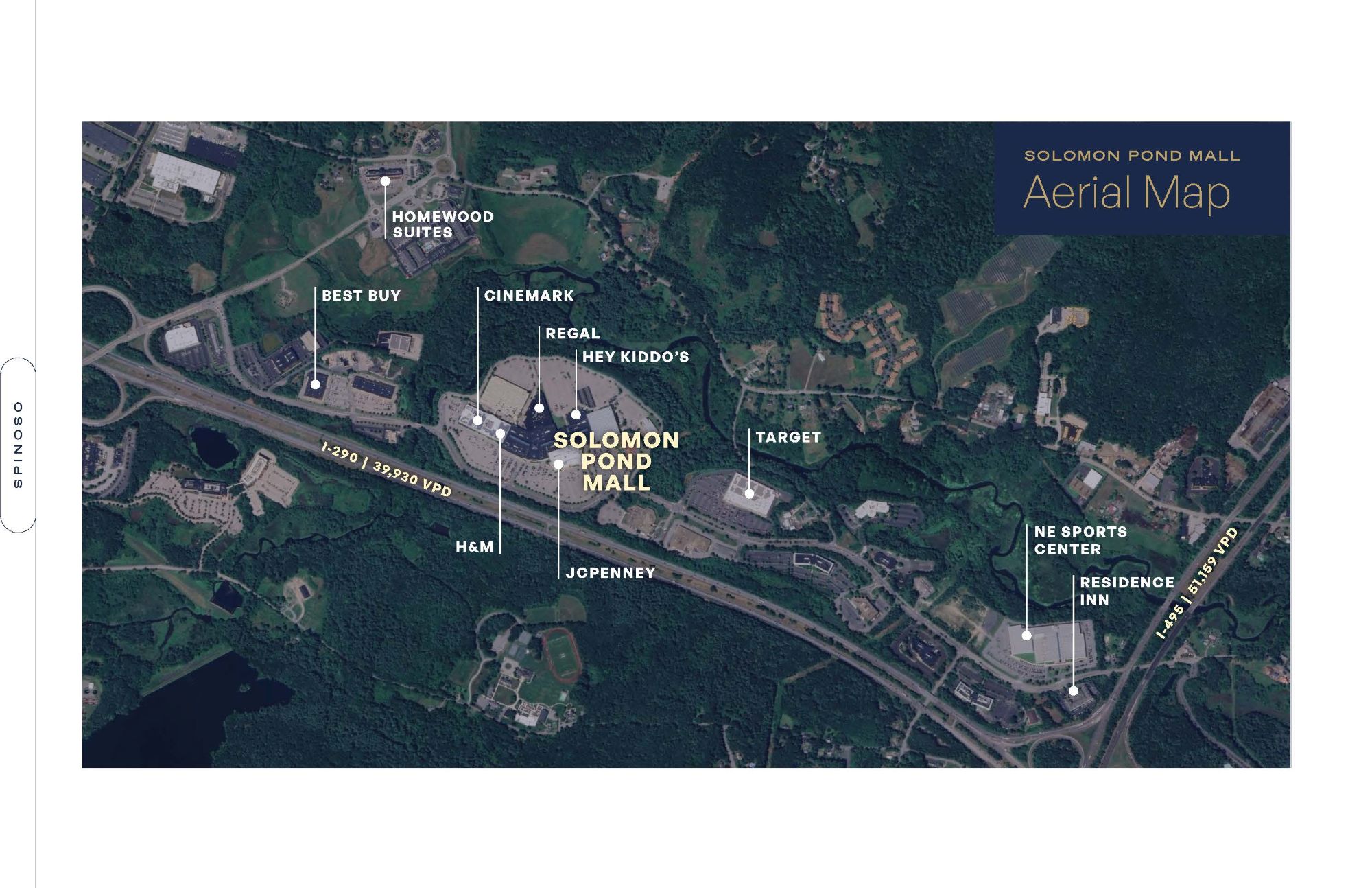 Solomon Pond Mall is the largest mall serving the Worcester area. Solomon Pond Mall in Marlborough, MA is located at the crossroads of two major highways, just 10 miles from Worcester and 28 miles from Boston. Among the 90 stores, Solomon Pond Mall is anchored by Macy’s, JCPenney, and Regal Cinema, and features H&M, Old Navy, and Talbots. Solomon Pond also offers exciting dining options from both national & local operators, including Sarku and Auntie Anne’s.