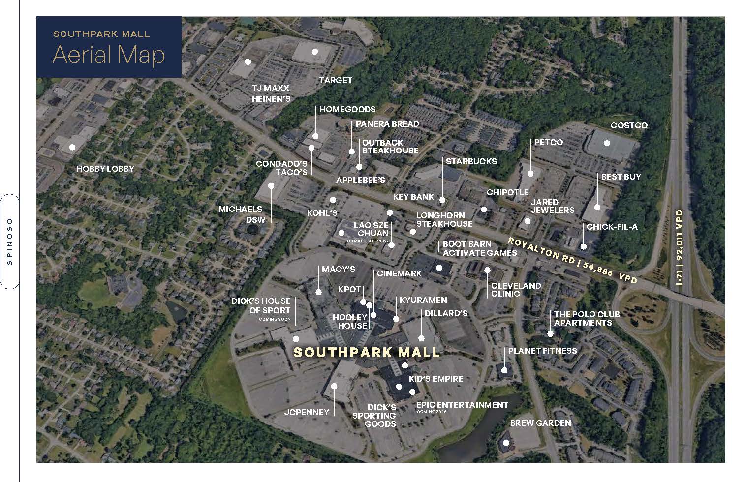 SouthPark Mall is one of the best established and most successful centers in the dynamic Cleveland market. As the epitome of the super-regional mall, this dominant center located along two major thorough fares allowing easy access from within the entire Cleveland Market.