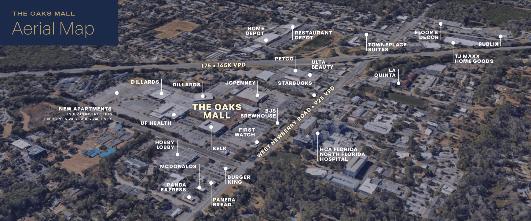 A charming streetscape awaits you at The Oaks Mall in Gainesville, where you have access to more than 100 stores featuring all your favorite brands. No matter what your taste or budget, you’ll find something special here. Major department stores flank specialty shops, making this the ideal retail destination in the area.
